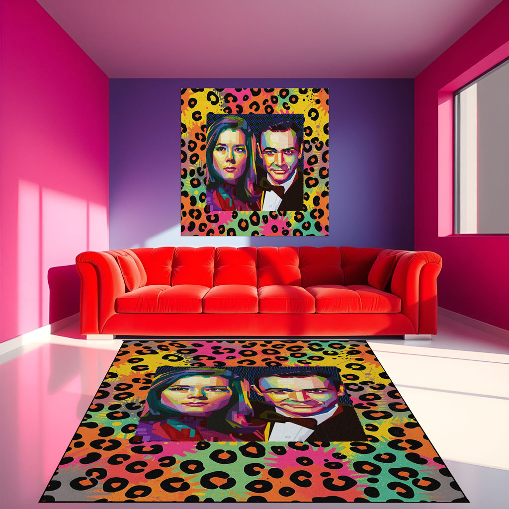 LeoModerna bietet hochwertige Teppichmatten, die in Deutschland gefertigt werden. Unsere dekorativen Teppiche sind inspiriert von Ikonen der Zeitgeschichte, Popmusik, Film und Literatur. Sie zeichnen sich durch einzigartige grafische Muster und über 500 exklusive Portrait-Bilder der ReCollection-Art Edition ColoriZmuZ* aus. Jeder Teppich wird individuell gestaltet und mit dem gewählten Portrait-Motiv und einem Fellmuster aus unserem Animalprint-Portfolio bedruckt. Alternativ sind die Teppiche mit einem Portrait-Motiv pur zu bekommen.
